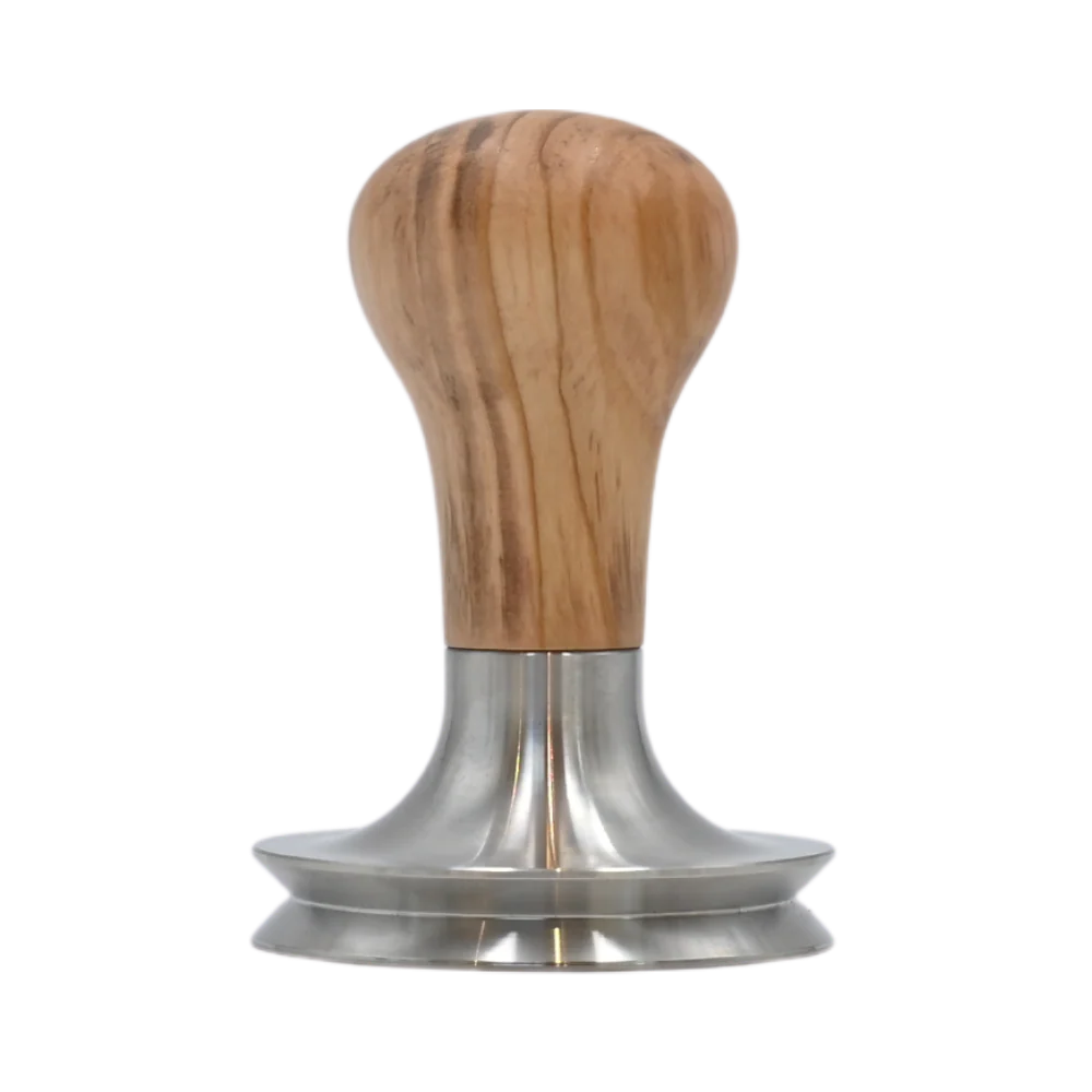 - Innovatives Design: Die konvexe Aussparung in der Base verhindert die Bildung eines Vakuums, was den Kaffeepuck beim Entnehmen schont und das Verklumpen vermeidet. Das Design sorgt dafür, dass der Tamper bündig mit dem Sieb abschließt und ermöglicht gerades Tampen.